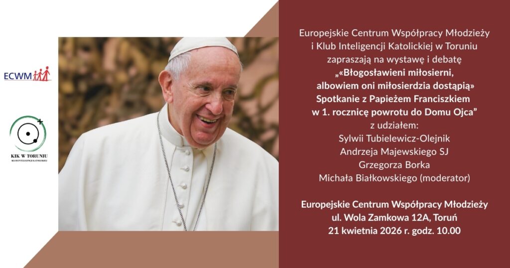 Z tej okazji Europejskie Centrum Współpracy Młodzieży i Klub Inteligencji Katolickiej w Toruniu w Toruniu organizują wystawę i debatę: „«Błogosławieni miłosierni, albowiem oni miłosierdzia dostąpią». Spotkanie z Papieżem Franciszkiem w 1. rocznicę powrotu do Domu Ojca”.